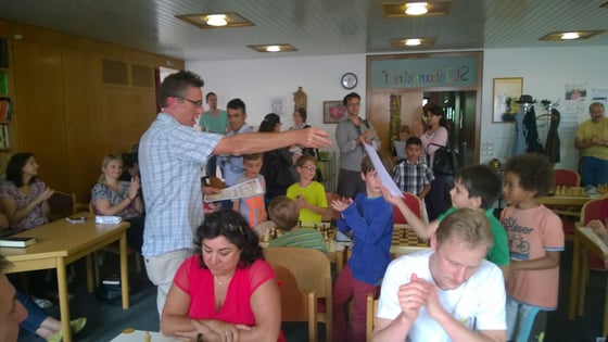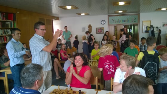 Thomas Gebhard, gut bekannt in der fränkischen Schachszene, organisiert in vielen Nürnberger Schulen Schachgruppen und in dieser Rolle auch die Grundschul-Mannschafts-Meisterschaft.