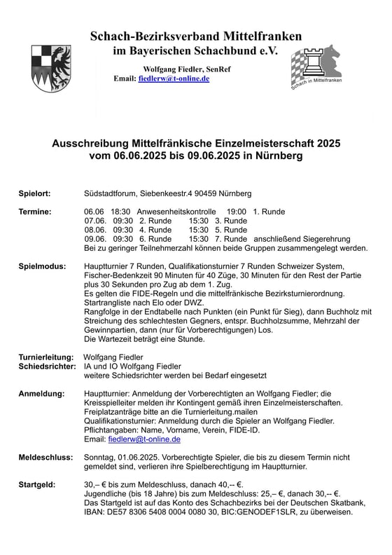 Mittelfränkische EM vom 06.06. bis 09.06.2025 in Nürnberg