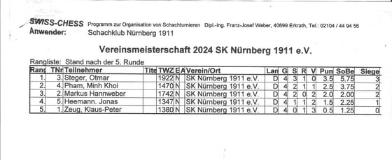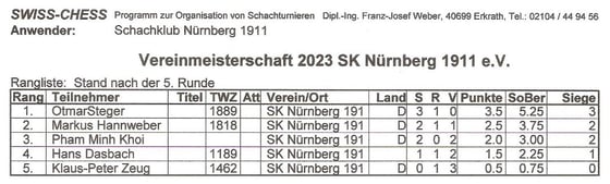 | Rangliste: Stand nach der 5. Runde | ||||||||||